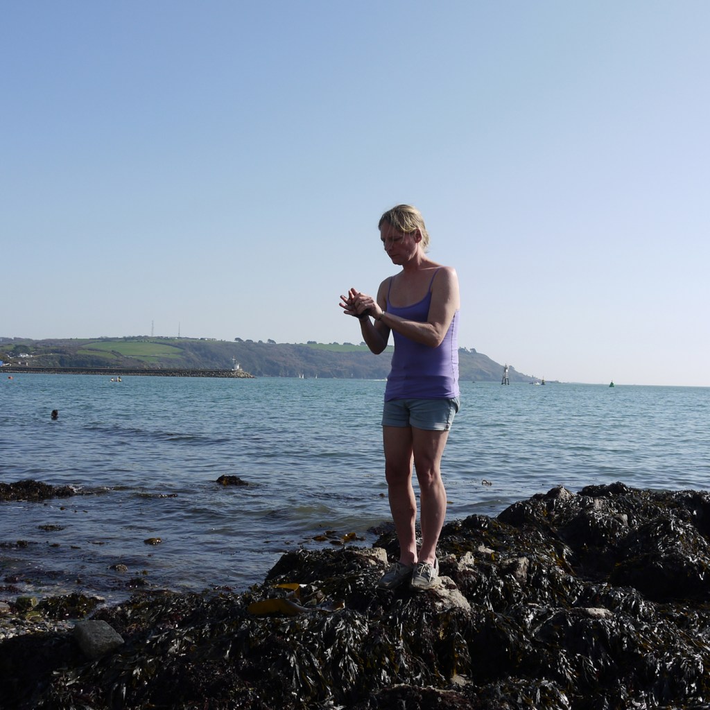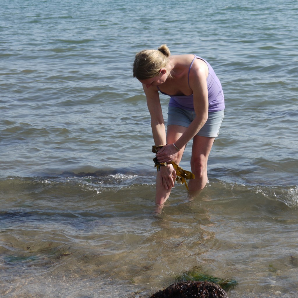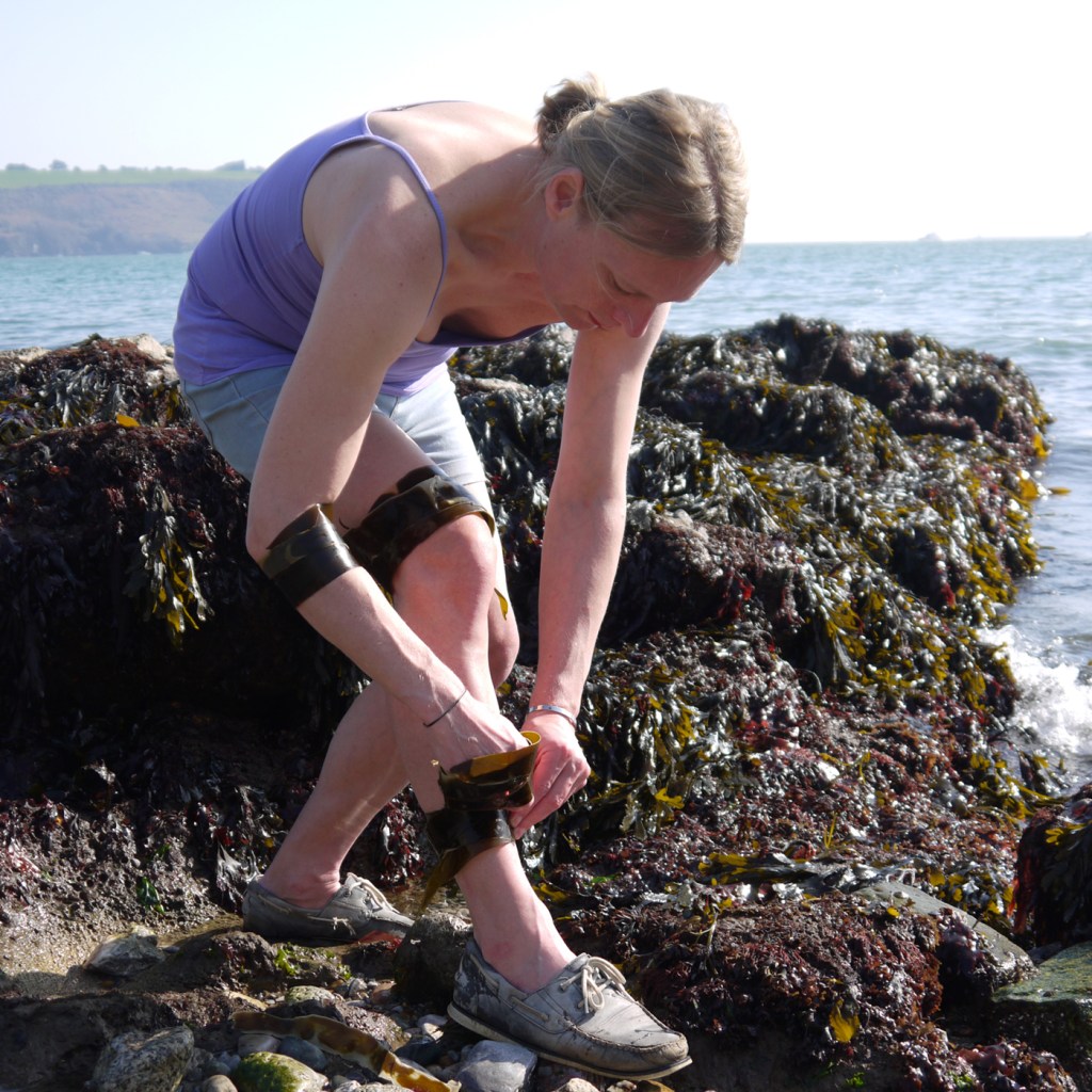 Returning to my sculptural site, my tidal rocks, my ocean, my sanctity of expression, convergence and communion – where I was sexually assaulted last summer while working. Kelp bandages where I was touched without consent, washing and cleansing myself with them.