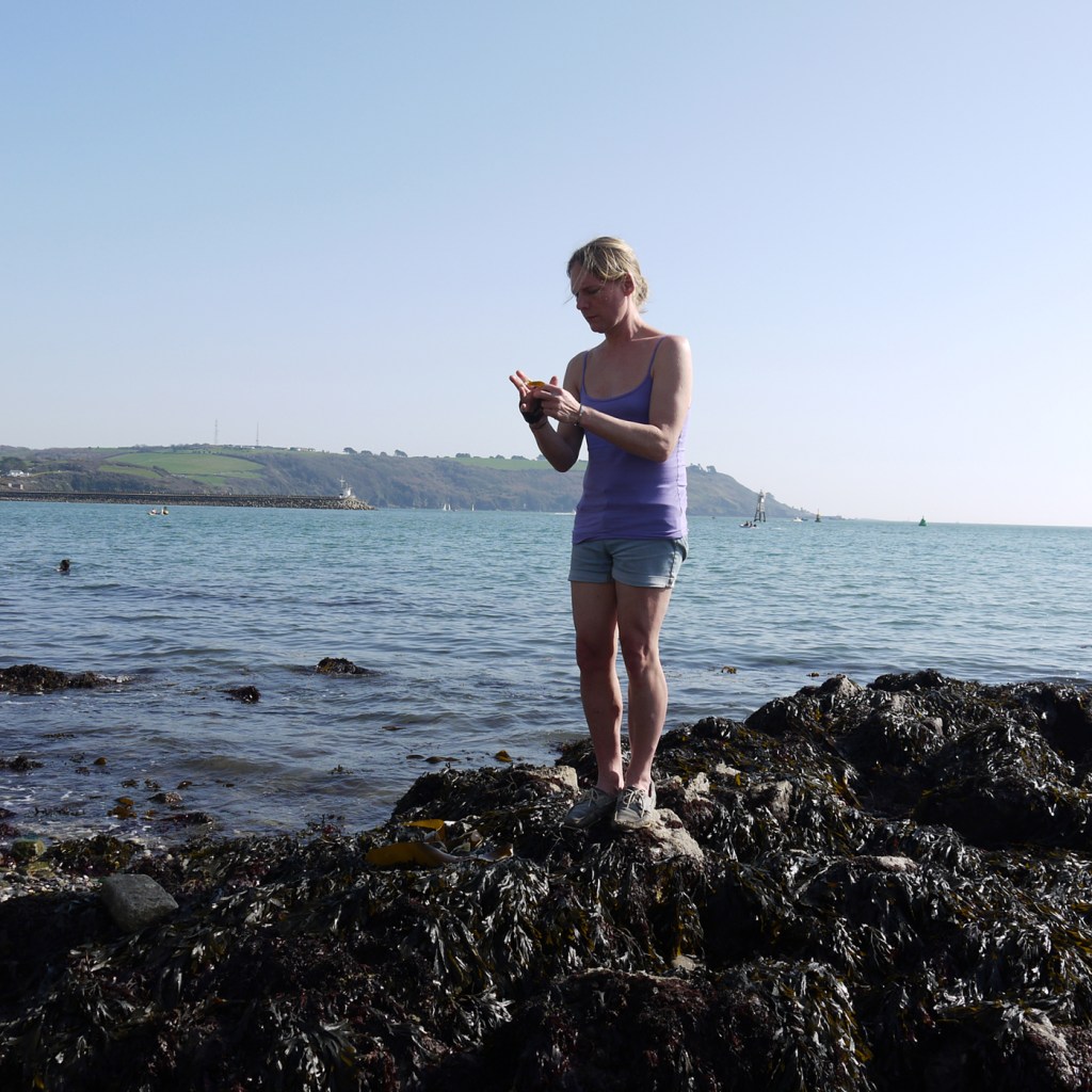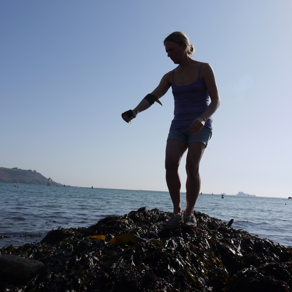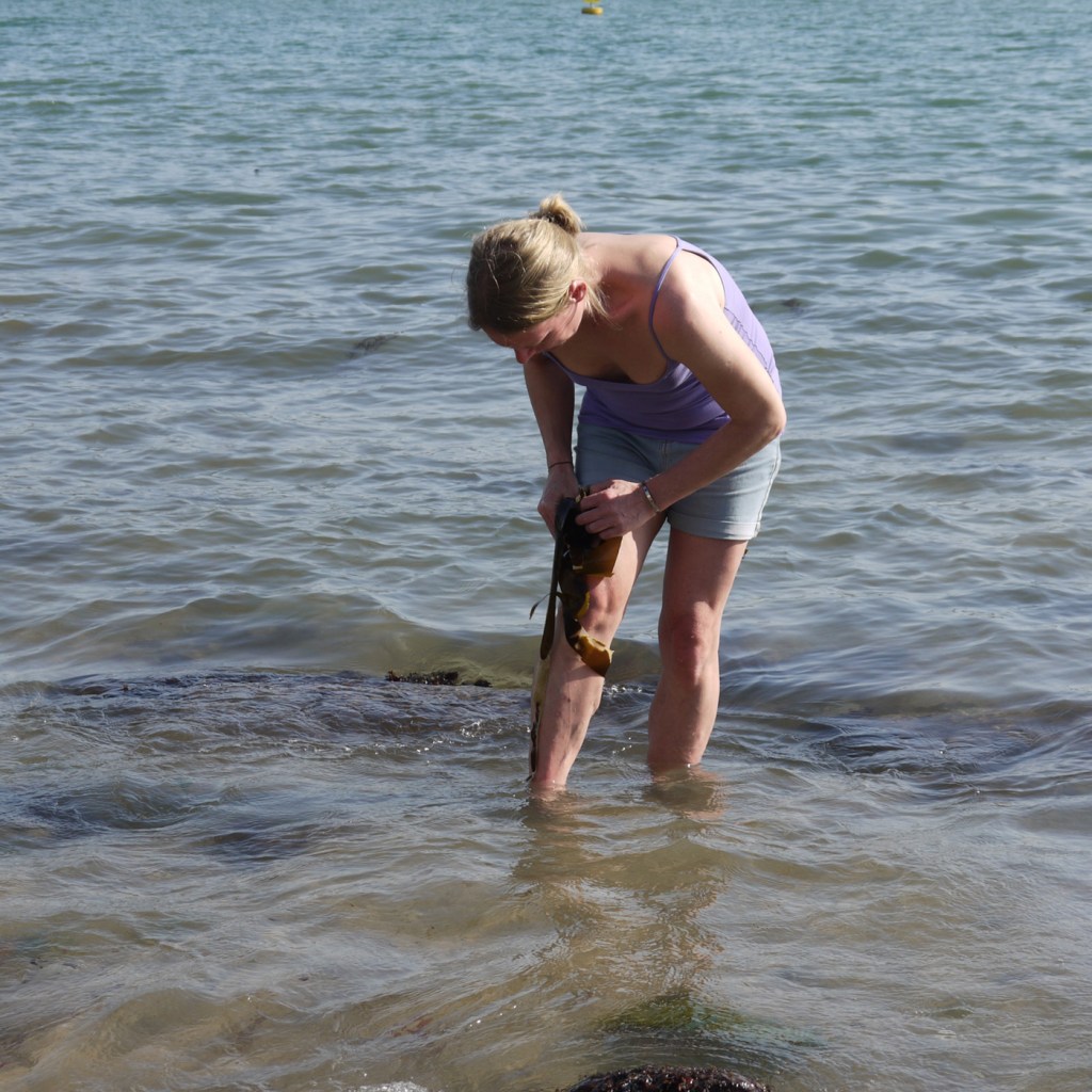 Returning to my sculptural site, my tidal rocks, my ocean, my sanctity of expression, convergence and communion – where I was sexually assaulted last summer while working. Kelp bandages where I was touched without consent, washing and cleansing myself with them.